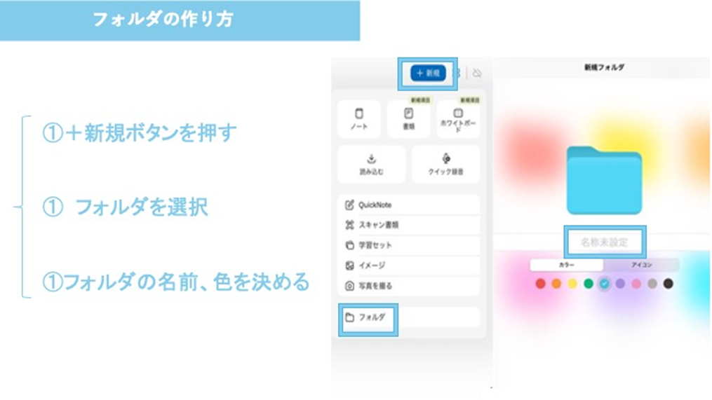 フォルダとは名前の通りダウンロードした資料や作ったノートなどを授業ごとに分けて